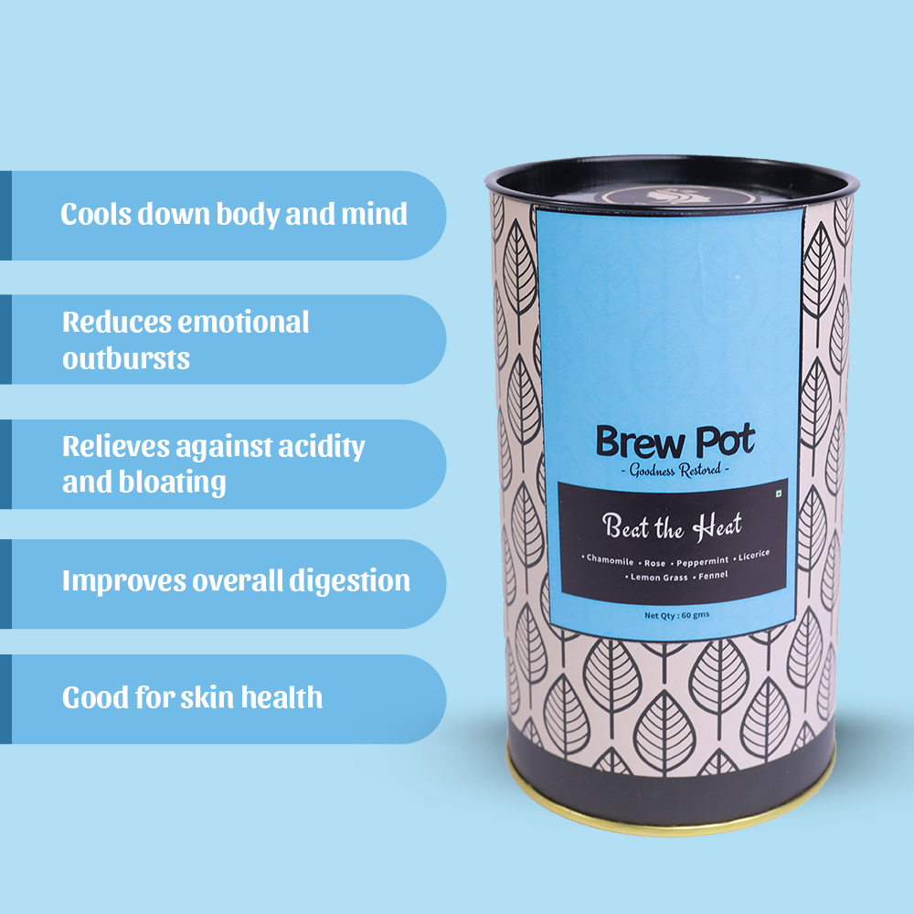 It is Pitta balancing tea. A Pitta type person possesses high levels of clarity and concentration. They are intelligent and action oriented. However, when their pitta imbalances, the are prone to rage, gastrointestinal problems, and skin issues. To put out the fire within, to cool down and heal, consider our cooling Pitta Dosha tea.