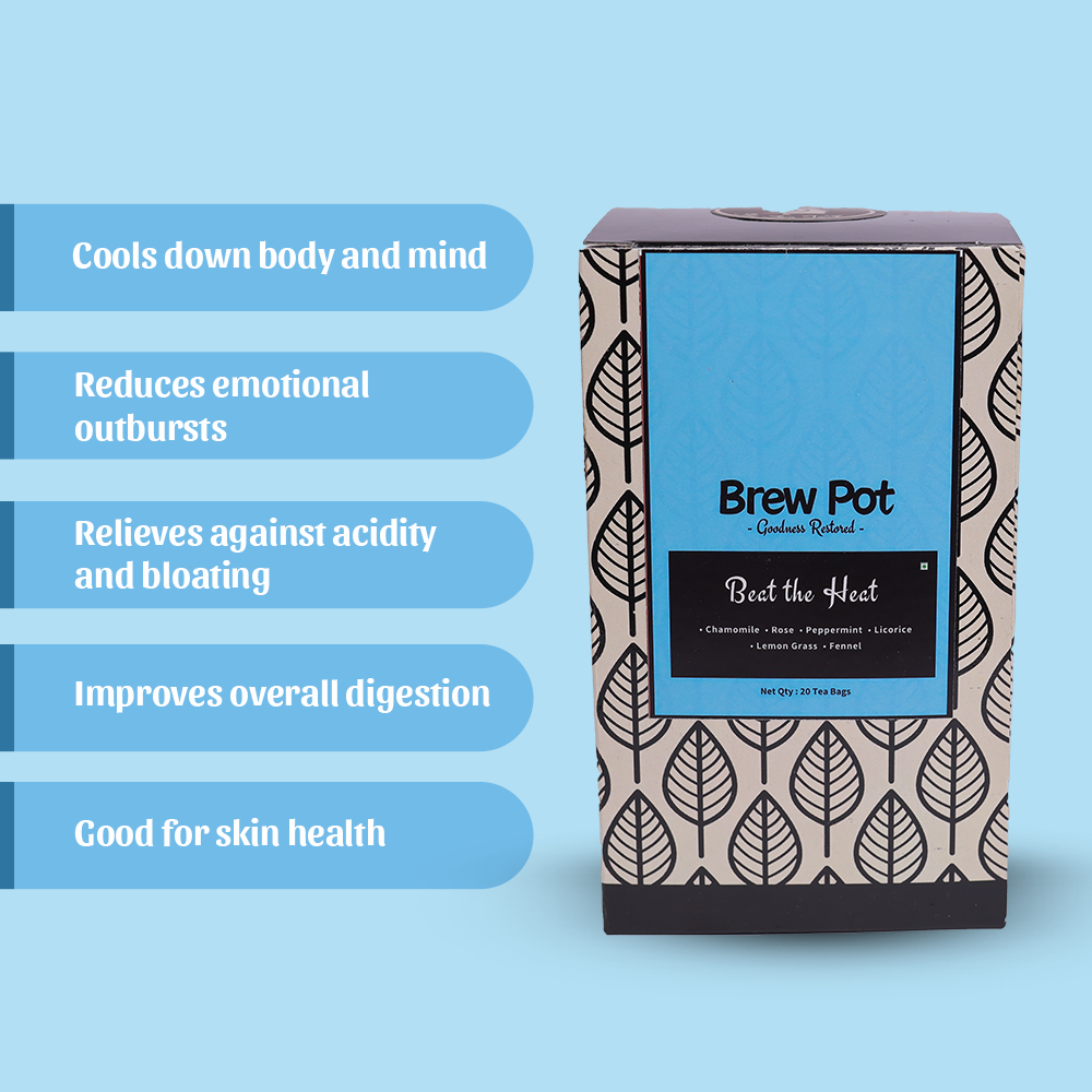 It is Pitta balancing tea. A Pitta type person possesses high levels of clarity and concentration. They are intelligent and action oriented. However, when their pitta imbalances, the are prone to rage, gastrointestinal problems, and skin issues. To put out the fire within, to cool down and heal, consider our cooling Pitta Dosha tea.