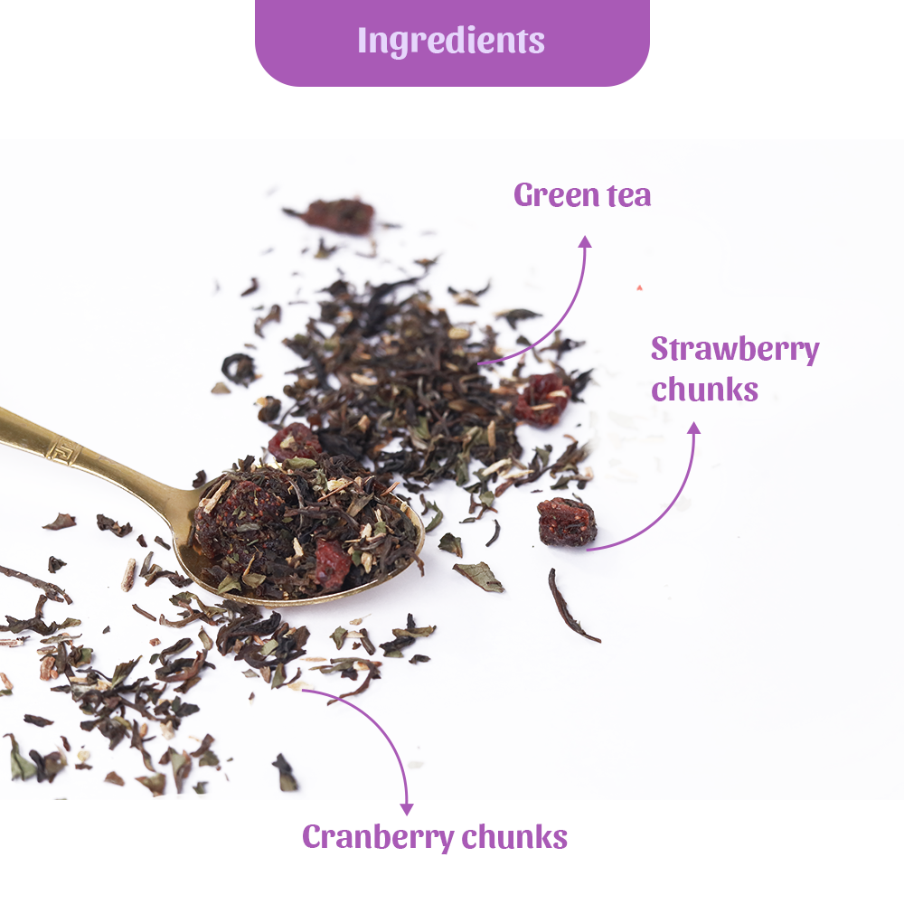 This synergy of elegant green tea touched with the succulent berries with sweet, mellow and sour flavours, it is incredibly satisfying and uplifts your soul. This balance blend is a wonderful daily shot of antioxidant. A perfect tea for who loves healthy indulgences.