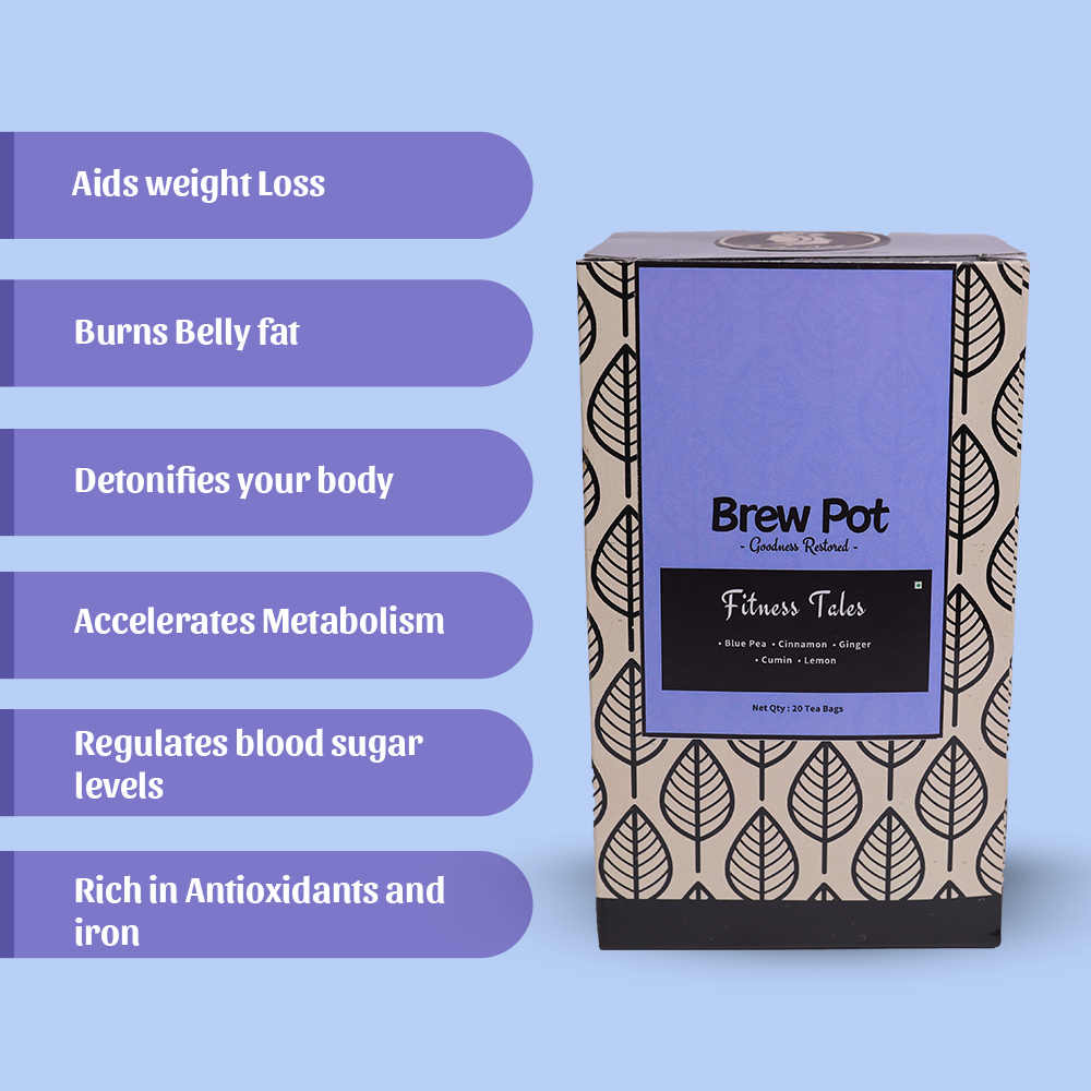 A perfect tisane of blue pea flowers and lemon is an absolute treat to your tongue and eye. This purple brew is a support fuel to your fitness regime. Step into the world of tranquillity with Brew pot’s exquisite caffeine free floral tea. Its time to shed pounds with goodness of herbs and flowers.
