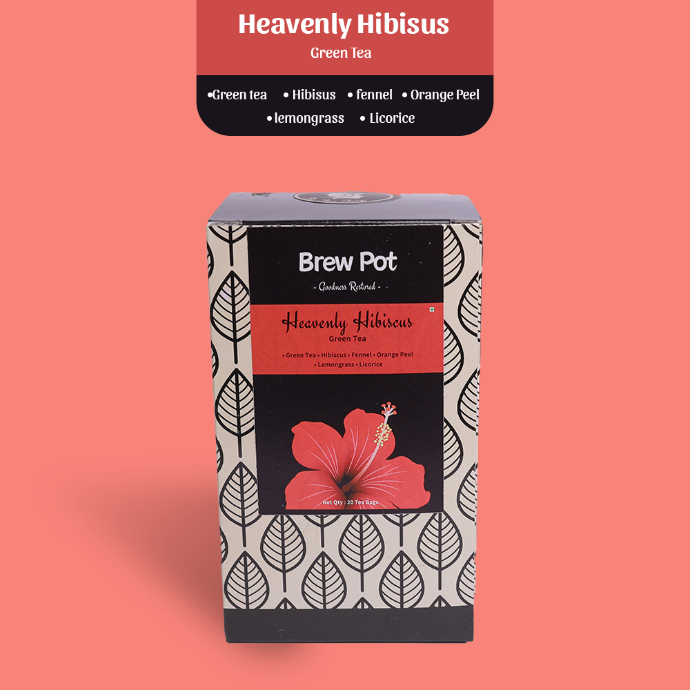 Heavenly Hibiscus is a divine delicious mix of organic hibiscus petals, green tea, fennel and orange peel for its tart like flavour red brew. Indulge your senses every morning to a citrus, lemongrass and hibiscus aroma and flavours that bursts with sweetness.