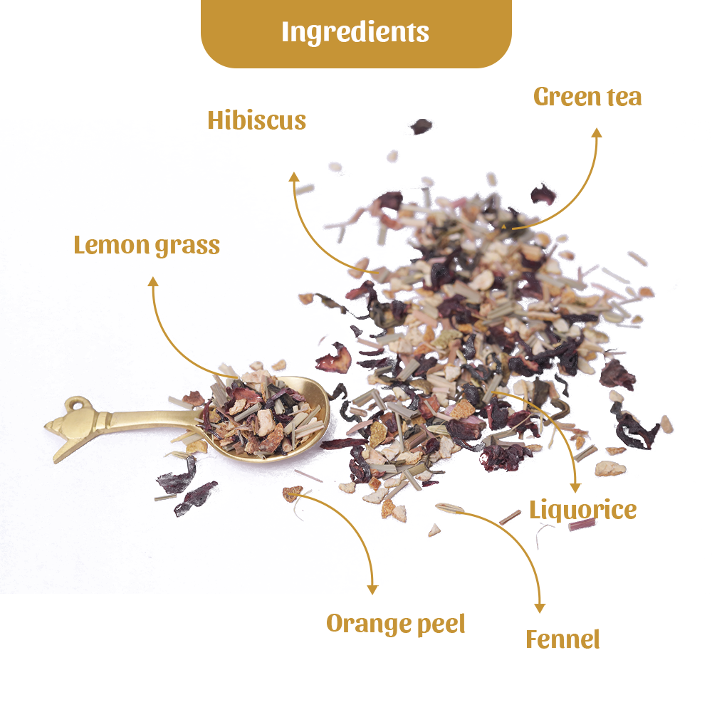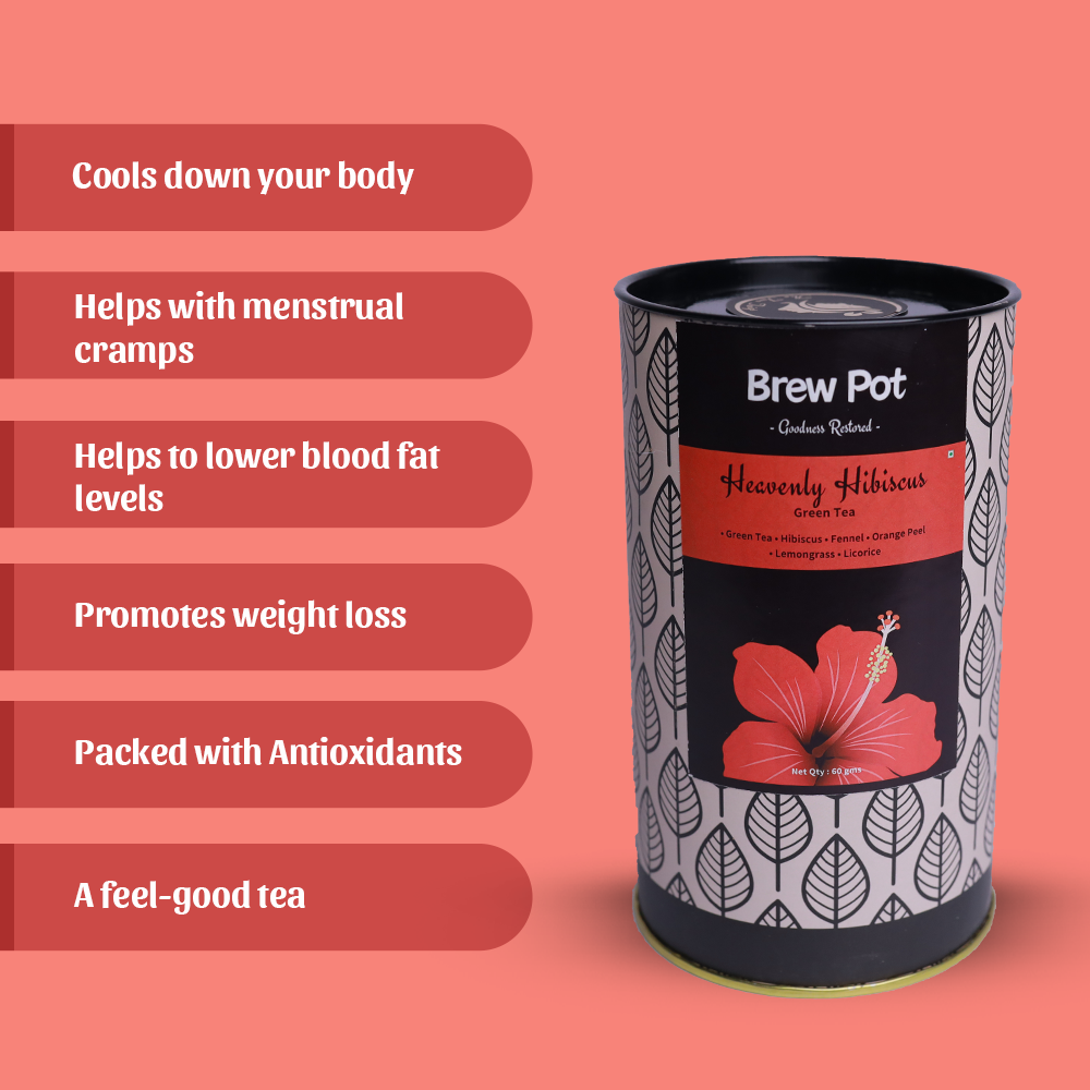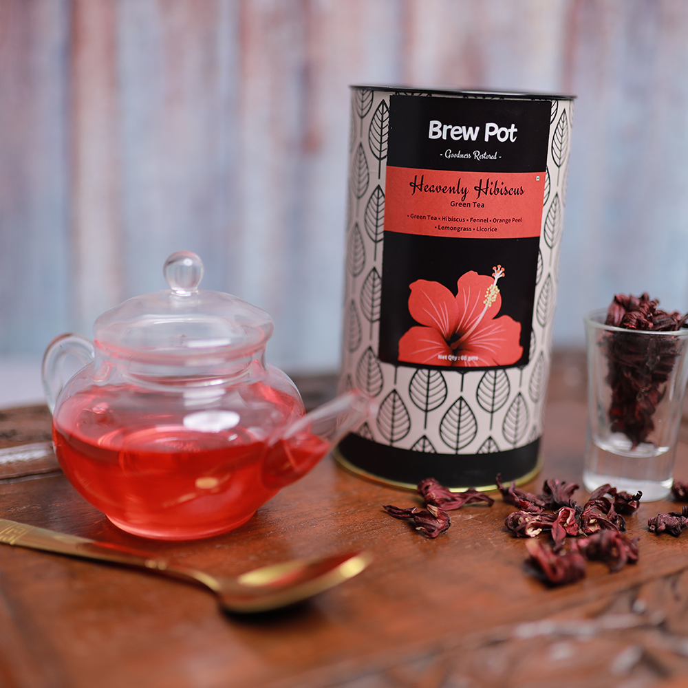 Heavenly Hibiscus is a divine delicious mix of organic hibiscus petals, green tea, fennel and orange peel for its tart like flavour red brew. Indulge your senses every morning to a citrus, lemongrass and hibiscus aroma and flavours that bursts with sweetness.