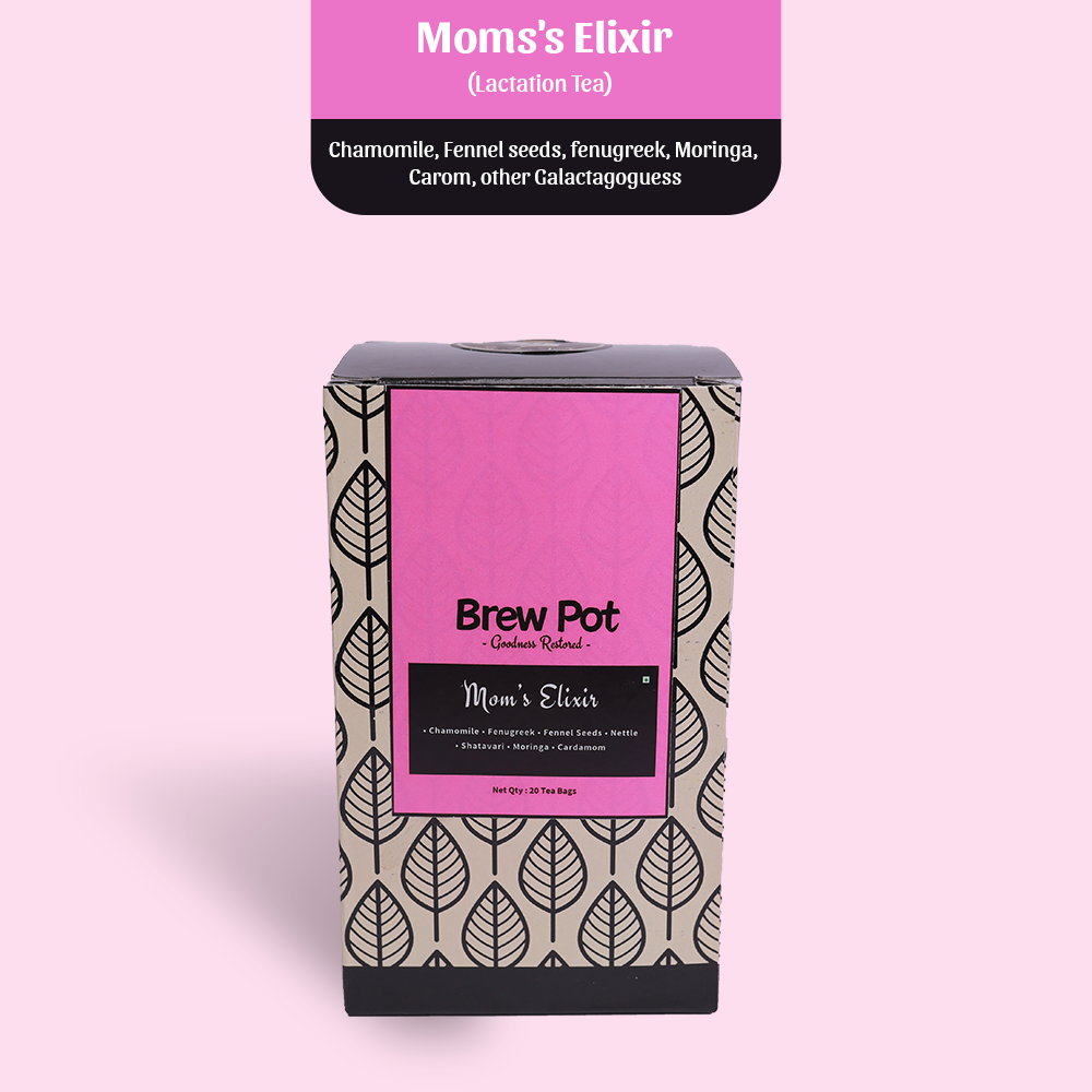 Brew Pot’s Lactation tea is a delicious blend of traditional herbs for nursing mothers. It is based on the traditional and age-old recipes passed down from our grandmoms to our moms. Breastfeeding mommies may often experience that their milk production has faltered or they are not producing enough breast milk supply for their babies. Most new mothers either partially or entirely stop breastfeeding within few months due to insufficient milk production. Here comes the Mom’s Elixir for the rescue. It is completely caffeine free. It increases the milk supply, alleviate iron deficiency, boosts immunity and soothes baby’s stomach. Happy feeding!