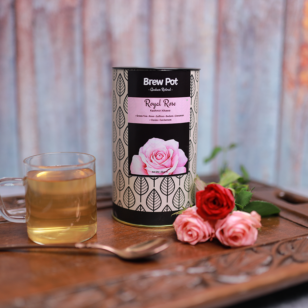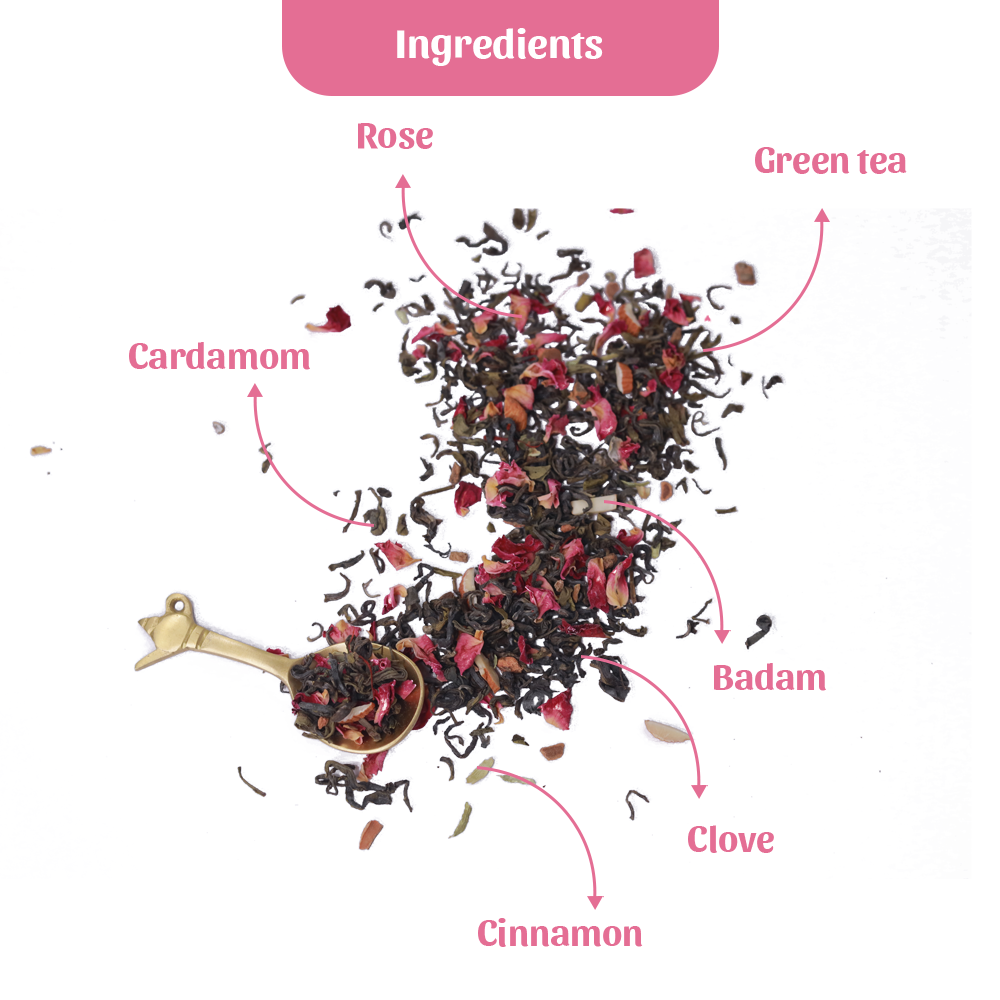 This is truly a celebratory tea. Luxury is a cup of molten gold tea, laced with almonds and spices from paradise. Kashmiri Kahwa tea lives up to legend, the richness of authentic Kashmiri dry fruit and spices, organic green tea to create an intensely flavoured golden blend. A premium blend with green tea and other rich ingredients including almond and saffron, with the touch of rose makes this tea special and refreshing.